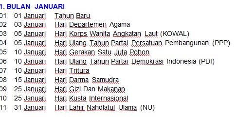 Salam Sejahtera - Berikut adalah ini Daftar Tanggal dan Peringatan Hari Bersejarah yang dianggap penting untuk diingat dan diperingati setiap bulan :